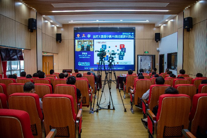 罗智泉教授从人工智能简述、国内国际医疗大数据的研究热点、研究院相关工作以及医疗大数据未来面临的挑战4方面进行授课。据介绍,AI医疗目前主要应用于医学影像、虚拟助手、药物发现、医院管理、健康管理、疾病预测、精准治疗和辅助诊疗等8方面,例如医疗影像AI可应用于CT图像金属伪影抑制,抑制骨减影的X光胸片增强,阿尔兹海默症早期诊断,胸部CT影像肺结节检测以及CT影像颅内出血区域检测等,在临床医学应用中十分重要。在深圳市大数据研究院相关工作开展上,研究院与市健研数管中心、深圳市人民医院、深圳市第三人民医院、深圳市肿瘤医院等在医疗文本分析、医学影像等方面均有合作项目。医疗大数据应用让患者获得精准治疗方案有了更大的可能,但目前还面临着医学术语和临床问题定义不统一,缺乏高质量的标注数据,计算复杂度高、计算量大,AI和医学专业人才紧缺等挑战,亟须与其他医疗机构展开深入合作和研究,联合培养高端医学人才。