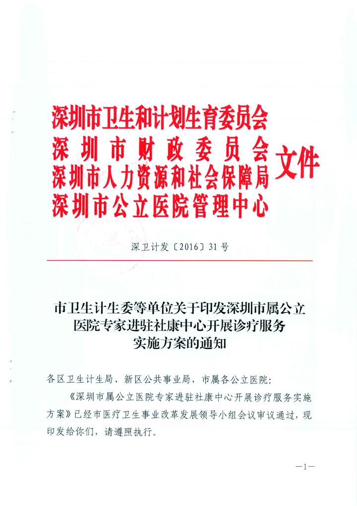 | 名称: | 深圳市卫生计生委等单位关于印发深圳市属公立医院专家进驻社康中心开展诊疗服务实施方案的通知 | ||