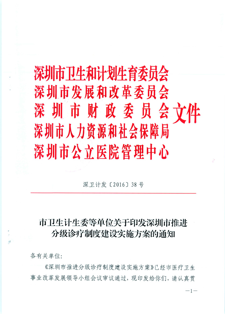 | 名称: | 深圳市卫生计生委等单位关于印发深圳市推进分级诊疗制度建设实施方案的通知 | ||