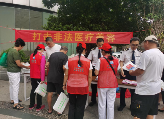 为保障群众健康权益,深入宣传非法行医的严重危害,提高群众辨识非法行医行为的能力,自觉抵制非法行医,近日,罗湖区卫生健康局在龙园山庄龙园广场组织开展了“打击无证行医”“打击非法医疗美容”“打击非法应用人类辅助生殖技术”宣传活动。