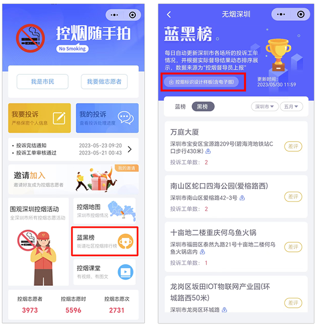 另外,点进蓝黑榜后,可以下载规范的控烟标识(含电子烟)设计图,方便需要更换标识的商家、物业、管理处等使用。