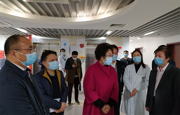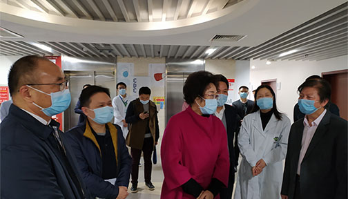 吴以环副市长(右三)、刘昂副秘书长(左一)一行查看市疾控中心新启用的核酸检测实验室