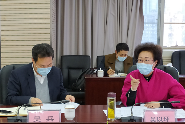 吴以环副市长(右一)、吴兵副主任(左一)组织专家进行疫情研判